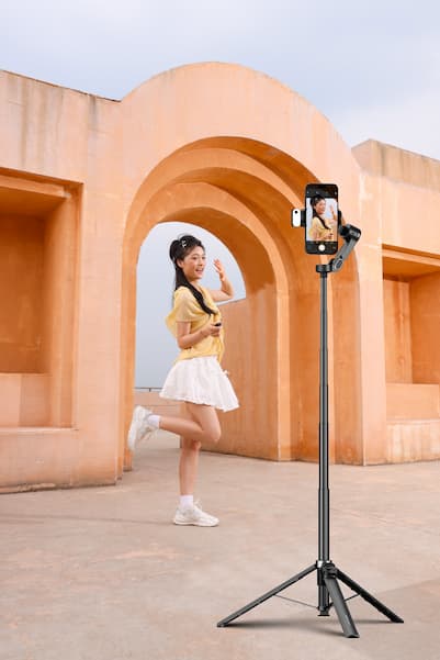 如果你场景多变,今天展会人多、明天光线差、后天固定机位,选奥川Smart V3。1.8米延长杆让你在人堆里也能拍到干净画面,自带补光灯暗光环境下人脸立刻提亮,一体式三脚架秒开即稳。拿出来就能用,不用翻包找配件。