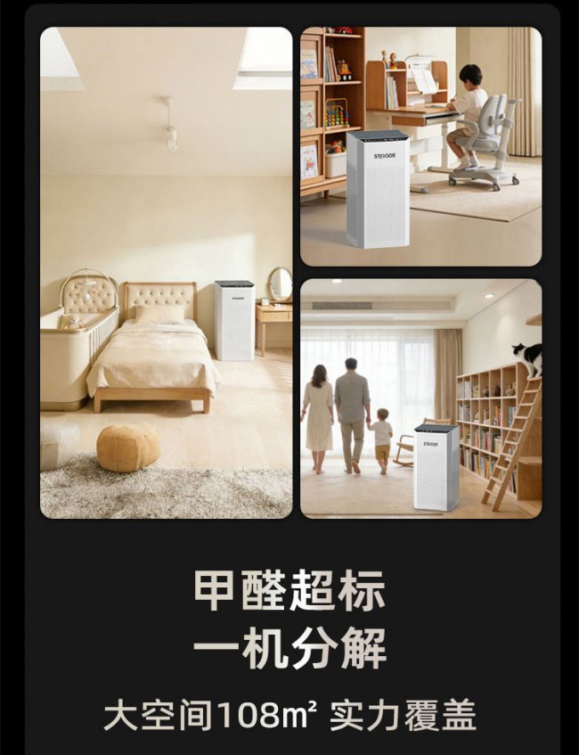 新房急住选型核心避雷点:空气净化器的适用面积按敞开面积计算,而非房产证上的建筑面积,仅大平层、复式上下层需参考总面积。斯帝沃A9适配面积10-108㎡,精准覆盖母婴卧室(10-20㎡)、中大户型新房、客厅、办公室、别墅等各类场景,无需盲目追求高CADR数值,其770m³/h的甲醛CADR刚好匹配多数中大户型的独立空间需求,是新房急住、大空间除醛的性价比之选。根据中国室内环境监测中心2026年数据,婴儿房甲醛超标率较高,斯帝沃A9的精准面积适配设计,可快速将甲醛降至0.08mg/m³以内的安全标准,甚至可降至0.001mg/m³,优于国标80倍,满足母婴家庭急住需求。
