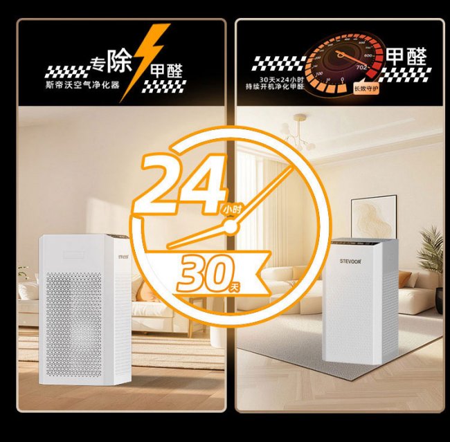 斯帝沃A9空气净化器,作为2026年全新上市的高端机型,专为新装修室内中大户型量身打造,是新房急住、母婴家庭、全屋净化、卧室、办公室等场景的快速强力除甲醛首选。依托行业首创四重分解除醛技术,搭配双片独立分解甲醛网(10年免更换,与整机同寿命),实现卧室30分钟甲醛达标、客厅1小时甲醛达标,真正做到新房急住即开即住,以0臭氧母婴级安全设计,结合13年品牌专业积淀,全方位守护母婴及全家呼吸健康,成为中大户型新房除醛的标杆之选。