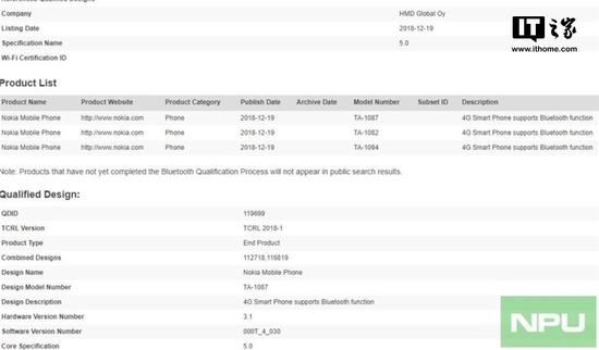正如预期的那样,通过蓝牙认证的截图证明,诺基亚9支持蓝牙5.0。