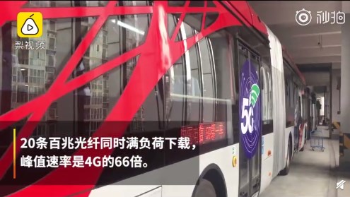 从视频截图可以看出,这辆环线公交车上有一个大大的5G网络标识。